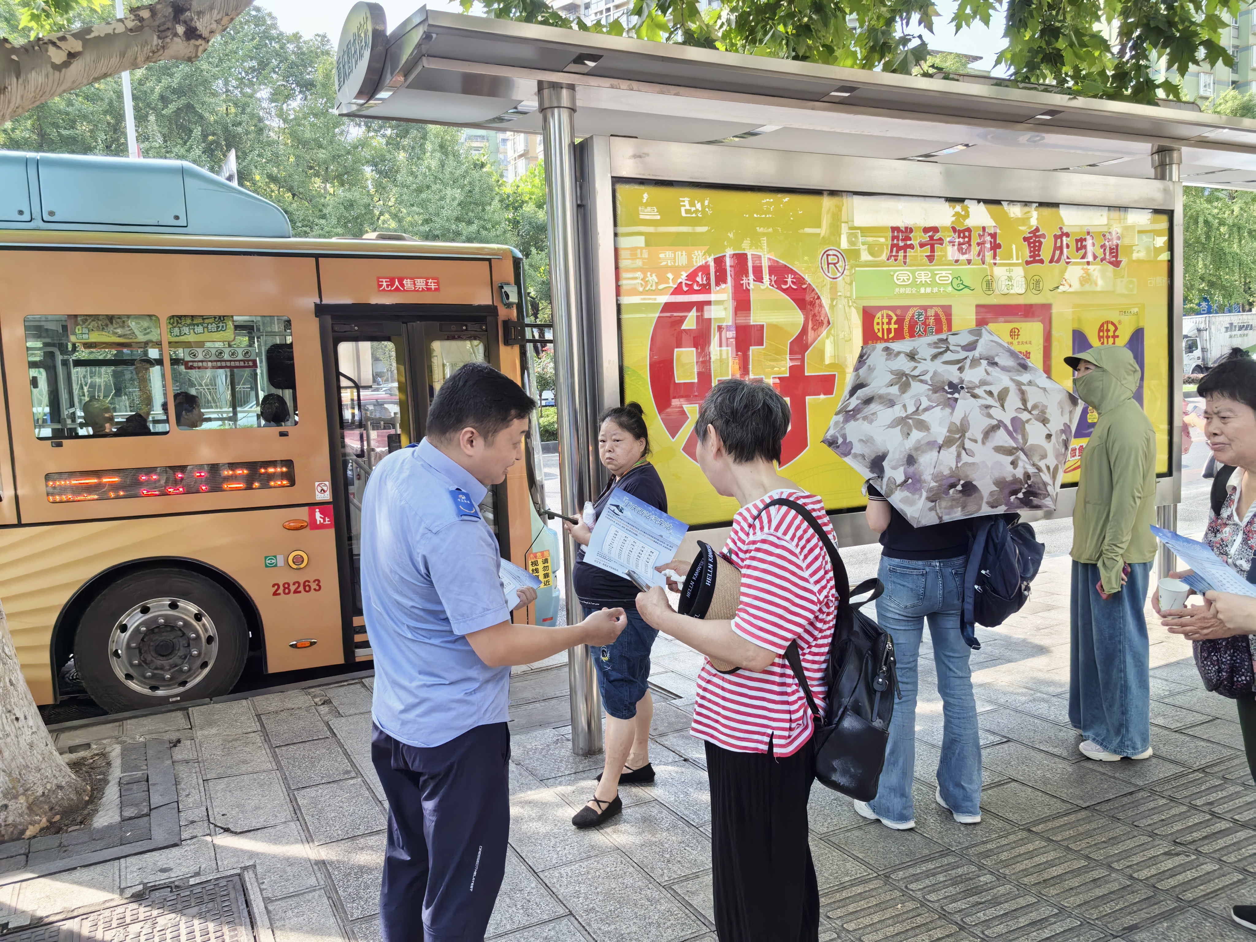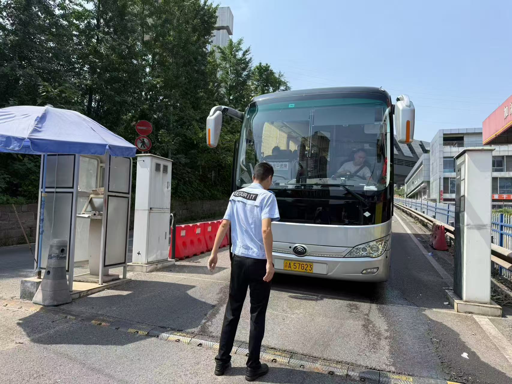 夏季高温环境下,车站露天停车场的地面温度常常超过60℃,为了防范停车场车辆、枯树枝等自燃的安全隐患,西站汽车站安全保卫部经理陈夏带领消防干事康超在明晃刺眼的阳光下扛着水管对停车场地面进行洒水降温,高强度的“日光浴”使他们的脸上又红又烫、汗水直流,但他们仍然坚持每天开展洒水降温工作,默默守护站场安全。