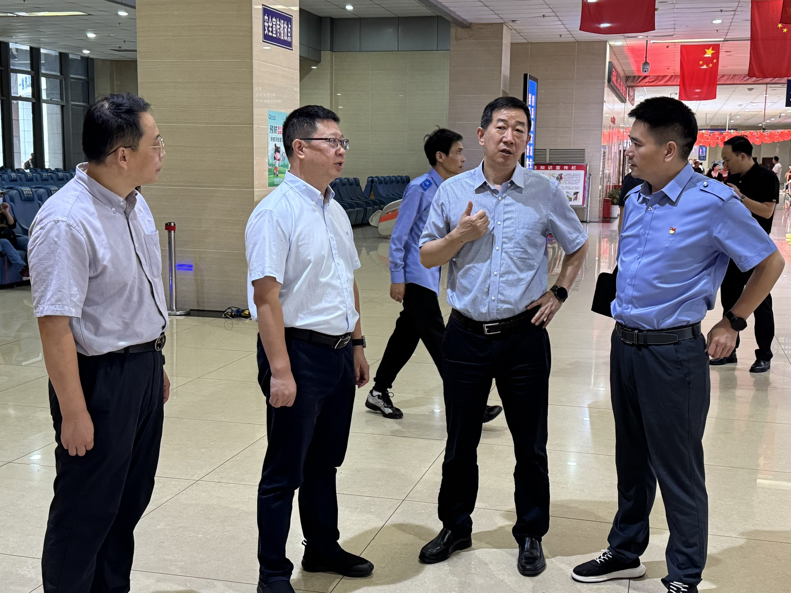 张强一行实地查看了三危品检查岗、售票厅、候车厅、监控室、二手家具市场等重点场所,详细询问各区域安全管理、服务保障细节。在听取车站关于双节期间安全运输组织、运力储备、应急方案的工作汇报后,他肯定了车站前期准备工作,并结合检查情况,对双节运输工作提出六点明确要求: