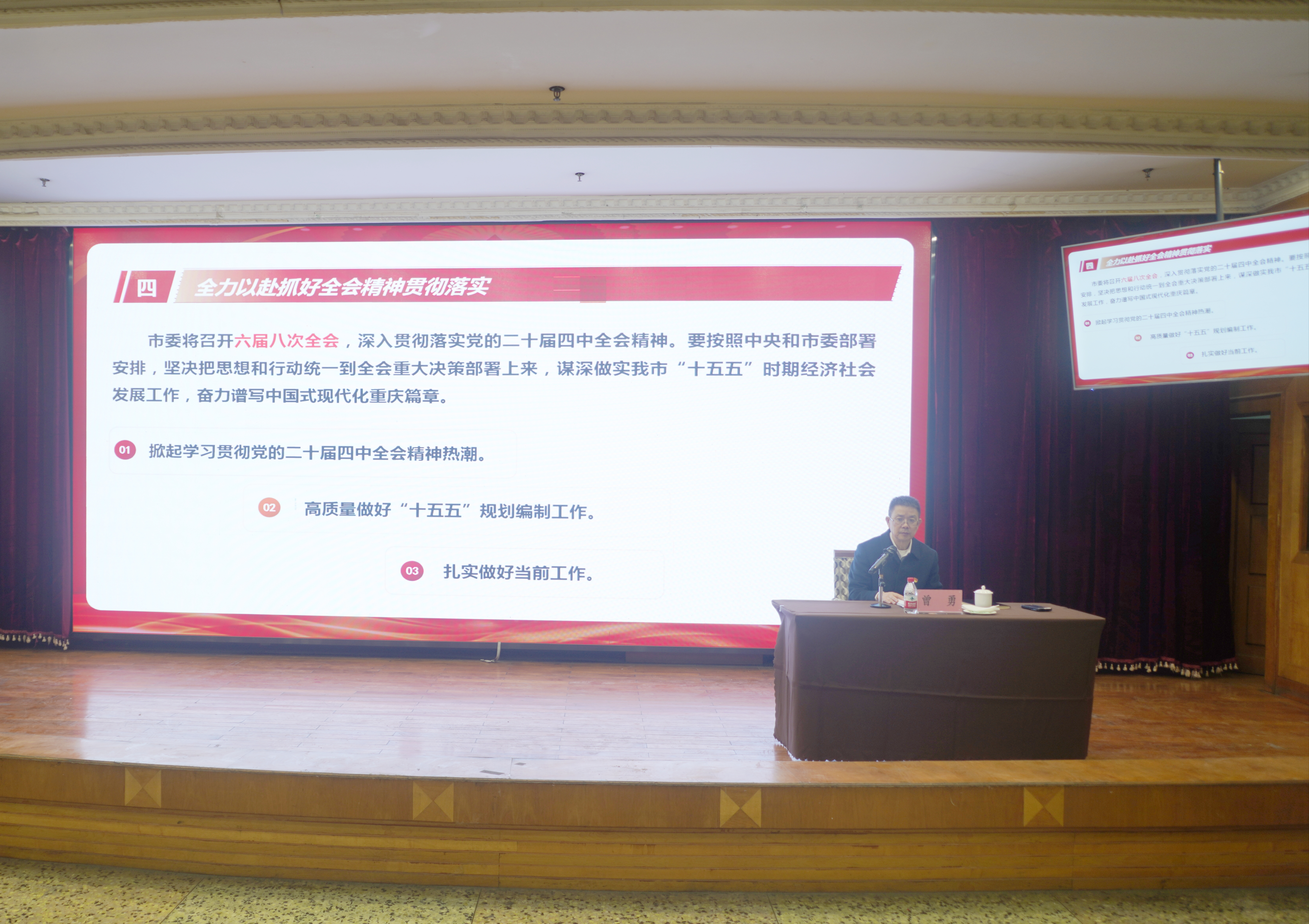 在宣讲会上,曾勇从六个方面多角度、多层次对全会精神进行了系统阐释和深入解读,为与会人员带来了一场思想深刻、内容翔实的思想政治课。曾勇表示学习宣贯四中全会精神是当前和今后一个时期的重要政治任务,要求运业公司上下要以全会精神为指引,找准企业发展方向、准心和目标。一是全力以赴,达成目标。各级领导干部要切实扛起责任,强化统筹协调与过程调度,以务实作风狠抓工作落实,确保年度各项主要经济指标实实在在、保质保量完成。二是复盘谋划,蓄势聚能。全面复盘年度生产经营与改革发展各项工作,既要深挖亮点、固化成功经验,也要精准查找短板弱项,剖析根源,制定切实整改措施。要密切结合区域发展特性与内外环境变化,尤其准确把握明年客运市场的新趋势、新差异,做到心中有数、研判精准。在此基础上,坚持以高质量发展为主题,以改革创新为动力,科学谋划明年工作。紧紧围绕“客运止滑稳增、改革攻坚突破、资产盘活提效”三大核心目标,持续推进商业模式创新与内部管理提升。要对接“十五五”规划要求,清晰界定明年重点任务与实施路径,确保发展蓝图有序转化为现实成果。三是坚守底线,稳固大局。必须时刻绷紧安全稳定之弦,毫不松懈抓好年终各项安全维稳工作。强化源头治理,特别是对出租物业,要切实履行产权单位安全管理主体责任,加强日常监督检查与隐患排查整治,杜绝“以租代管”现象,坚决防范各类安全事故,保障企业平稳运行。四是从严治党,压实责任。要始终坚持全面从严管党治党,认真履行“一岗双责”,坚持严的基调与实的作风,将党建工作与生产经营、改革发展同谋划、同推进、同落实,以高质量党建引领保障企业持续健康发展。