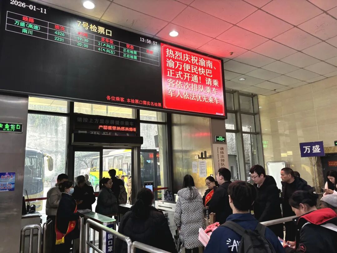 1月11日,四公里汽车站正式开通渝南、渝万两条便民快巴线路,焕新升级38台新能源大巴,实行高频次发班(南川线20分钟/班,万盛30分钟/班)及“一票直达、一价通达”的惠民票价机制,显著提升旅客出行效率与经济性。截止1月13日,整体运营平稳有序,客流增幅明显。其中:“渝南同城·便民快巴”运送旅客4625人次,较上月环比增长128.40%;“渝万同城·便民快巴”运送旅客2258人次,较上月环比增长11.84%,便民快巴运营优势已初步显现。同时,四公里站积极优化配套保障体系,设置昼夜专用停发车位、候乘区,完善导向标志标识,配备专职引导与应急保障人员,确保旅客疏运工作安全高效,旅客出行获得感与满意度显著提升。