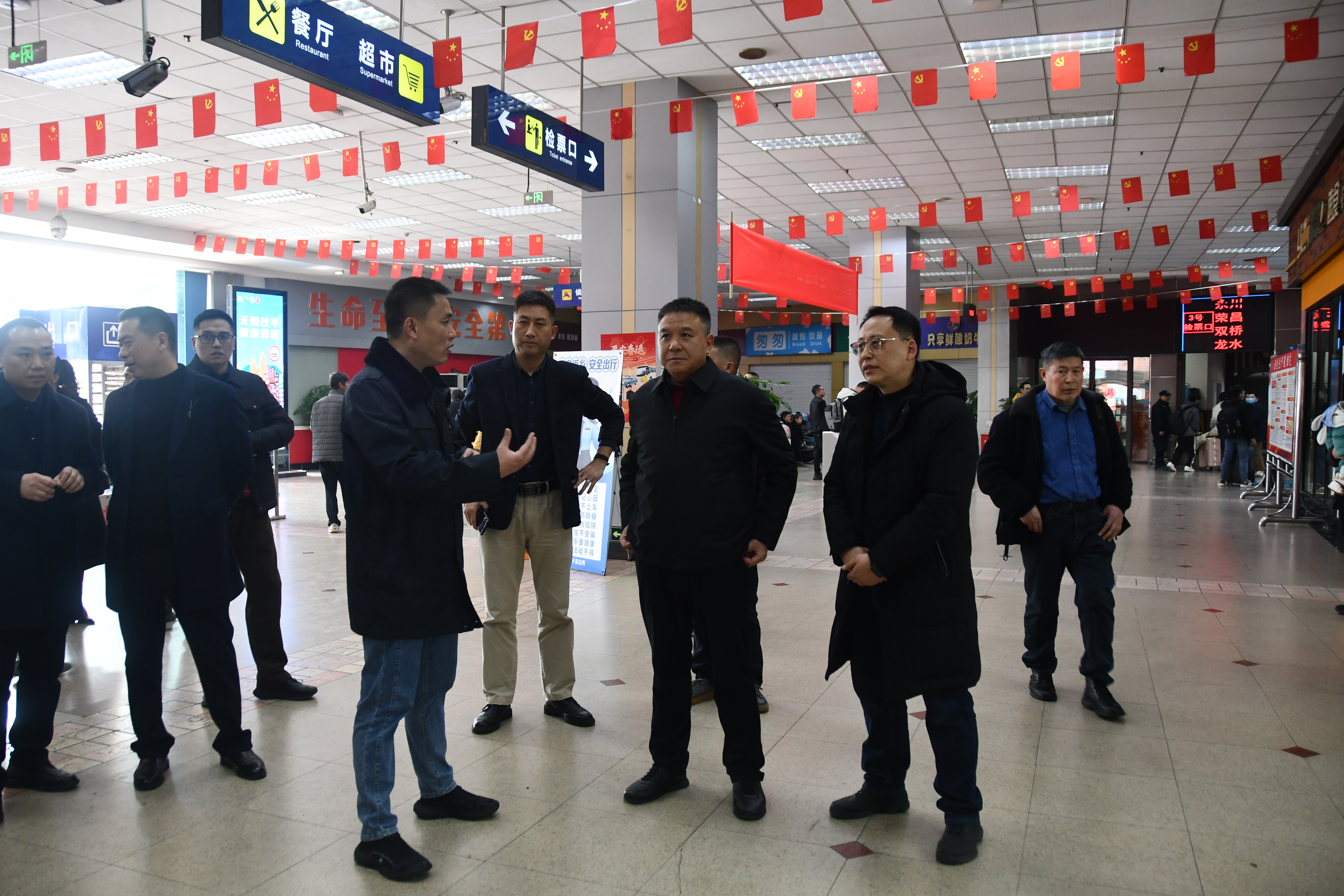 2月14日下午14时30分,重庆物流集团党委委员、副总经理唐玉才带队赴陈家坪汽车站,检查指导春运旅客安全运输保障工作,同时,调研车站便民快巴运营情况。集团客运旅游事业部副总经理乔乐宁、集团部分二级企业领导、运业公司党委委员、副总经理谢凌志及车站相关负责人陪同调研。