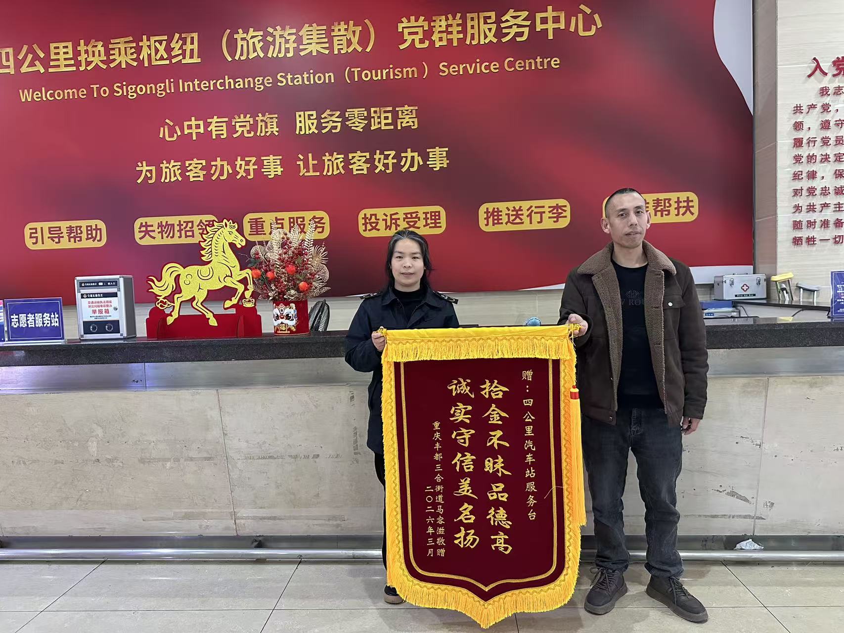 一面锦旗,一份认可,一份担当。这一暖心举动,生动诠释了重庆四公里汽车站 “心中有党旗,服务零距离” 的服务理念,充分展现了车站工作人员坚守初心、履职尽责、诚信友善的优良作风。